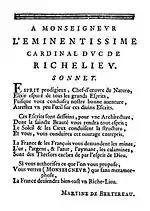 The second was in the form of poetry, addressed to Cardinal de Richelieu La restitution de pluton, (1640) which truly is a plea for the couple, more specifically for Martine to be paid for the work they undertook for the king.[7]
