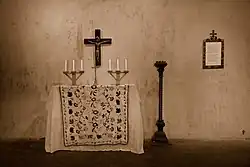 Now owned by the Taos Historic Museums,[22] it is a living museum honoring the contributions of the early Hispanic settlers in the Taos Valley.[3] It is particularly focused on life during the 1820s under Spanish colonial rule. For instance, the weaving exhibits display wool died with vegetable based tints. And the hacienda's interior walls are white washed with tierra blanca, which is a mixture of micaceous clay and wheat paste.[8]