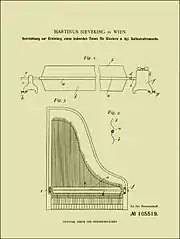Sieveking was an imaginative thinker and mechanically adept. Besides teaching, he also devoted his time inventing apparatuses and mechanical appliances of various kinds with some submitted for patent. He also invented and devised his own improvements for the piano.[5] Sieveking invented a mechanical device for the piano to produce a peculiar vibration in the sound or notes of the instrument. While in Austria, he had the apparatus patented in the country on March 6, 1898 (No. 105,519). It was also filed for patent in Canada on August 26, 1898.[60] In the 1930s, he improved and patented a piano-action spring (Patent No. 2,046,853 filed on July 5, 1935),[61] which he improved two years later (No. 2,138,517 files on March 18, 1937).[62] He even had a piano built especially for him that had wider keys and a sloped down lower octave so that his arms could utilize gravity to produce a larger sound.[63]
