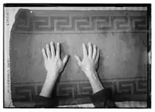 His physique was later described by Russian pianist Mark Hambourg, another student of Leschetizky, as "more of a house than a man", his hands matching his frame.[81] Sieveking had large muscular hands with a reach of 12 notes, similar in reach to Sergei Rachmaninoff's.[82] His hands were so large that he found it hard to play on ordinary sized keyboard, since his fingers got stuck in between the black keys. He had two pianos in his home in New York, a regular piano and a specially made French piano with wider keys.[51] The whole keyboard was also tilted downward at the back, which he explained was a decided advantage.[83] For his return concert in Berlin in 1907, Steinway built him a customized piano with the keys proportionally enlarged, making the entire keyboard about one foot longer than the standard keyboard. The keyboard was also slanted like his home piano.[53]