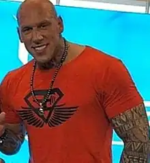 Martyn Ford (born 26 May 1982) is a British bodybuilder, actor, and social media personality. Ford gained significant attention and recognition for his physical stature and height, standing at around 6 feet 8 inches (203 cm) tall. He is often referred to as "The Nightmare" due to his intimidating appearance.[1]