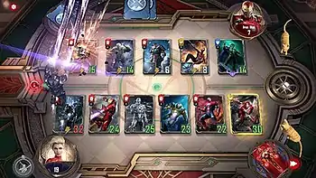 Marvel Duel is a mobile collectible card game developed and published by NetEase in collaboration with Marvel Entertainment. It is a multiplayer game available for both Android and iOS, in which the players battle each other using cards representing characters from the Marvel Universe. Like NetEase's other Marvel title Marvel Super War, this game is not a global release and is only available in select countries, launching in Thailand, Indonesia, Philippines, and Malaysia[1] and later expanding to Singapore, Taiwan, Hong Kong and Macau.[2] The game is free-to-play with a game shop that sells packs and cards in addition to various cosmetic items.