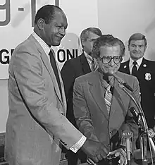- Gun control. He called for a "broad-range" attack on the "widespread ownership and use of guns"—saying he would push for legislation to prevent gun violence. "This is something that will take four of six or maybe even 10 years," he said. Council members Jackie Goldberg, Mark Ridley-Thomas, Ruth Galanter and Laura Chick seconded his proposal.[17]