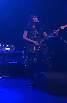 Saki described Mary's Blood as a straight heavy metal band, but because they have many different styles of songs, she feels free to make whatever sounds she wants with them.[36] From the beginning of the group, Mari and Eye have consciously aimed to have vocal melodies that are catchy and easy for Japanese people to listen to.[5] Saki stated that while their music is also consumed internationally, the band mainly thinks about Japanese listeners, and said it is hard to find a balance between the pop things and the heavy metal things as a member.[37] The guitarist explained that Eye and Rio love visual kei music, which sometimes makes it difficult for her to find the tones to match the vocals in songs that they compose.[36] Both Eye and Rio wanted to be in bands because of L'Arc~en~Ciel, Mari started playing music because of X Japan, and Saki was inspired to become a musician by Seikima-II.[38][39]