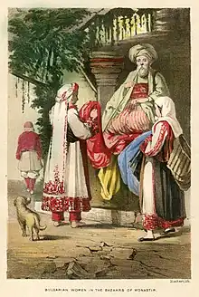 1864 Illustration titled "Bulgarian women in the bazaars of Montasir" by Mary Adelaide Walker