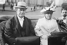 Bryan remained married to Mary, until his death in 1925.[9] Afterwards returning from the funeral in Washington, she wrote more than half of the nearly 600-page memoirs of William Jennings Bryan that were published later that year.[1] She was buried next to Bryan at Arlington National Cemetery after her death in 1930.[10] William and Mary had three children: Ruth, William Jr. and Grace. Ruth won election to Congress in 1928 and later served as the ambassador to Denmark during the presidency of Franklin D. Roosevelt.[11]