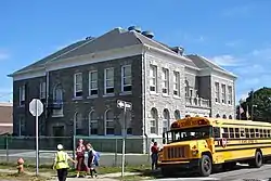 Mary Disston School is a historic school building located in the Tacony neighborhood of Philadelphia, Pennsylvania. It was built in 1900–1901, and is a two-story, three-bay, U-shaped stone building in the Colonial Revival style. A rear addition was built in 1967. It features a recessed central entrance with columnaded porch, arched openings, and a balcony; a central Palladian window; and hipped roof.[2]