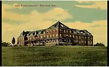 In 1991, the main buildings of the West Point campus were added to the National Register of Historic Places under the umbrella title Mary Holmes Junior College Historic District in recognition of the college's role as "the major institution for the education of Black students in the Clay County area from its founding in 1897" right up until desegregation in the 1960s.[9] Among the seven buildings included were the L-shaped Colonial Revival–style Main Hall, the Farmhouse (a former residence of the college's presidents), North Hall (originally the boys' dormitory), the open-air Pavilion, and the Craftsman-style Barr Library, all of which were between 50 and 90 years old at the time. The oldest building was North Hall, built in 1900, and the newest was Main Hall, built in 1939–40.[9]