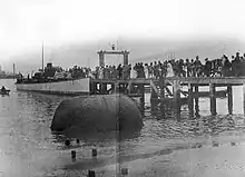 After the outbreak of the Second Boer War, Kingsley travelled to Cape Town on the SS Moor in March 1900,[27] and volunteered as a nurse. She was stationed at Simon's Town hospital, where she treated Boer prisoners of war. After contributing her services to the ill for about two months, she developed symptoms of typhoid and died on 3 June 1900.[2][3] An eyewitness reported: "She rallied for a short time but realised she was going. She asked to be left to die alone, saying she did not wish anyone to see her in her weakness. Animals she said, went away to die alone."[28] In accordance with her wishes, she was buried at sea.[29] "This was, I believe, the only favour and distinction that she ever asked for herself; and it was accorded with every circumstance and honour ... A party of West Yorkshires, with band before them, drew the coffin from the hospital on a gun carriage to the pier … Torpedo Boat No. 29 put to sea and, rounding Cape Point, committed her to the element in which she had chosen to be laid."[28] "A touch of comedy, which would 'have amused' Kingsley herself, was added when the coffin refused to sink and had to be hauled back on board then thrown over again weighed down this time with an anchor."[30]