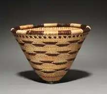 The Bensons supported themselves solely by crafting and selling their baskets to collectors and museums.[7] Beginning with the Spanish mission period in California, the Pomo, like other tribes, suffered drastic declines in population, severe cultural destruction, and the loss of land.[6][8] They began working as laborers on farms and ranches that occupied their own lands.[6] However, a market for their customary baskets opened in the 1880s and lasted until the 1930s,[9] an era known as the "Basket Craze".[10]