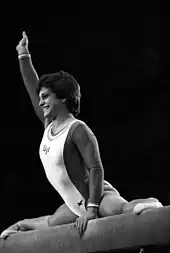 Retton's performance made her one of the most popular athletes in the United States.[3] Her gold medal win was historic as Retton was the first American woman to win the all-around gold medal in Olympic gymnastics.[4][5]