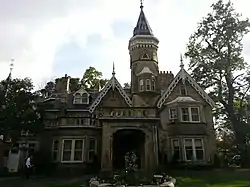 Mary McCormick visited Canada in 1904[85][86] and remained in Toronto for months.[86] She noticed the Oaklands manor on Avenue Road during her stay[85][86] and her family bought the property from the family of Senator John Macdonald[87] in November 1905[85][86][88] as a summer residence[88] for her.[86] By 1908, she occupied the estate[89] where her home held indoor gatherings for the Young Women's Christian Association (YWCA),[90][91][92][93] the Woman's Christian Temperance Union (WCTU)[94] and the Women's Christian Medical College.[95][96] The grounds of her manor held outdoor garden parties every June that raised funds for the benefit of the Girl Guides of Canada,[97][98] the Toronto General Hospital[99][100] and the Home and School Association of Brown Public School on Avenue Road.[101][102][103][104][105] In June 1916, her estate had the largest fête ever held in Canada,[106][107][108] a four-day festival[106][107][108] that was opened by Ontario Premier William Hearst[109][110] for the Canadian Red Cross Society[107][108] at the mid-point of the First World War.