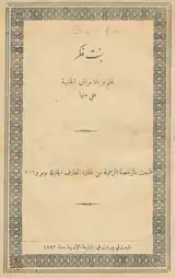 As early as 1870, Marrash started contributing articles and poems to journals—especially Al-Jinan and Lisan al-hal, both of Beirut.[20] In her articles, she criticized the condition of Arab women, urging the latter—regardless of their religious affiliations—to seek education and express themselves on matters of concern to them.[21] Her collection of poetry Bint fikr (A Daughter of Thought) was published in Beirut in 1893. Marrash was granted permission by the Ottoman government to print her book after composing a poem exalting Sultan Abdul Hamid II.[22][lower-alpha 2] In some of the several other panegyrics included in the collection, she also praised Ottoman governors of Aleppo.[24] Her poetry was much more traditional in style than her brother Francis', as exemplified by the elegy she composed to lament his death;[25] yet, she was at home with the poetry of French romantics, especially that of Alphonse de Lamartine and Alfred de Musset.[25] Sami Kayyali said about Marrash: