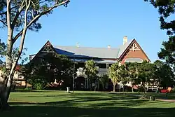 In September 1879 it was announced that the eleven designs for the school had been received and that the trustees awarded first prize to Maryborough architect E.G. Porter with second prize awarded to Brisbane architect Arthur Josling.[15] However, after forwarding the designs to the Queensland Government, in November 1879 the Queensland Colonial Architect F.D.G. Stanley declined both plans and advised the trustees to request Brisbane architect John Hall to prepare a design.[16][17] Previously, John Hall was appointed as a foreman of works in the Queensland Colonial Architect's Office and began in private practice in by 1864. In 1868 he was appointed a licensed surveyor and took over superintending the outstanding work of Benjamin Backhouse, in particular the Brisbane Boys Grammar School. As a private architect, Hall designed fine buildings throughout Queensland including buildings for the Queensland National Bank for which he was architect; residences including "Greylands" (Indooroopilly, Brisbane), "Langlands" (East Brisbane) and "Pahroombin" (Bowen Hills), commercial projects, churches and hotels.[1] Architects who had submitted plans to the design competition were outraged at Stanley's interference in the process.[18][19]