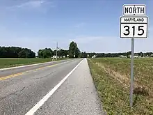 MD 315A is a 0.16-mile (0.26 km) connector between MD 318 and MD 315 at the Liberty Church Road intersection that runs one-way westbound.[1][9]