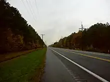Starting in the mid-1930s, MD 413 was relocated to an alignment paralleling the Crisfield Secondary Branch of the Pennsylvania Railroad. The first portion of MD 413 was relocated in 1935 in conjunction with the relocation of US 13 between Princess Anne and Westover. MD 413 was moved from Sam Barnes Road and Sign Post Road to its present alignment between US 13 and Old Westover–Marion Road in Westover.[11][12] The first section of the present straight highway between Crisfield and Westover was constructed in 1938 and 1939 from the eastern city limits of Crisfield (near the intersection with MD 358) to Hopewell.[13][14] The bypassed portion of MD 413 and subsequent bypassed segments were designated MD 667.[14] The section of the new alignment between Hopewell and Marion was completed in 1942.[15][16] The Marion–Westover portion of the realignment was completed in 1950.[17][18]