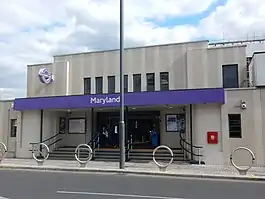 The station was opened by the Great Eastern Railway on its main line out of Bishopsgate on 6 January 1873 with the name Maryland Point. It was fully rebuilt in 1891 when the line capacity was expanded.[3] Its name was shortened to Maryland on 28 October 1940.[4] New station buildings, designed by Thomas Bennett, were opened in 1949.[5]