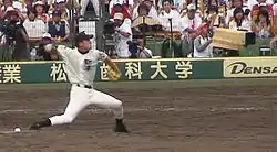 Tanaka moved on to Komazawa University Tomakomai High School in Hokkaidō, now playing solely as a pitcher for the team. Armed with a fastball that sat in high-80s and a hard slider, he led his team all the way to a championship in the 87th National High School Baseball tournament held at Koshien Stadium in the summer of his second year (eleventh grade).[4] His very last pitch of the tournament was clocked at 150 km/h (93 mph), the first time a pitcher had ever clocked that speed as a junior in the history of the tournament. Tanaka, already a highly coveted talent by NPB scouts, was chosen to the Japanese team that would play in the IBAF AAA World Junior Championships following the tournament and contributed to the team's title.