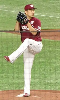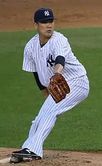 Masahiro Tanaka (田中 将大, Tanaka Masahiro, born November 1, 1988) is a Japanese professional baseball player for the Tohoku Rakuten Golden Eagles of Nippon Professional Baseball (NPB). From 2007 through 2013, he played for the Eagles in NPB. Tanaka was posted by the Eagles after the 2013 season to be signed with the New York Yankees in Major League Baseball (MLB) and signed a seven-year, $155 million contract, the fifth-largest deal ever given to a pitcher at the time.[1] He made his major league debut in 2014 and played for the Yankees through the 2020 season, before deciding to return to Japan.