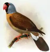 Instead of grey, several later authors described the body as brown and the head as bluish lilac, based on stuffed specimens, and this has become the "orthodox image" of the bird. Live birds were never described with these colours. Hume proposed that this colouration is an artifact of the taxidermy specimens having aged and being exposed to light, which can turn grey and black to brown. Such a transformation has also turned an aberrant dickcissel (Spiza americana) specimen (sometimes considered a distinct species, "Townsend's dickcissel"), from grey to brown.[2] The two extant Mascarene parrot specimens also differ from each other in colouration. The Paris specimen has a greyish-blue head and a brown body, paler on the underparts. Its tail and wing feathers were severely damaged by sulphuric acid in an attempt at fumigation in the 1790s. The Vienna specimen is a pale brown on the head and body overall, with an irregular distribution of white feathers on the tail, back, and wings.[24] In 2017 the Australian ornithologist Joseph M. Forshaw found it hard to accept that all the illustrations that showed the colour as brown were wrong; he found it more likely that the brown would have merely faded in intensity rather than from grey to brown. He stated that by the time the earliest known illustrations of the bird were made, it is unlikely they would already have faded to brown because of exposure to light. He also doubted that poor diet of caged birds would have consistently turned them brown, and instead accepted the "orthodox image" of the bird as brown.[25]