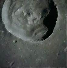 The landing site of the Apollo 11 expedition is located about 250 kilometers to the west-southwest. To the northeast are Wallach and Aryabhata. To the southeast is the bright Censorinus. To the south are the lunar mountains informally known as Duke Island and Boot Hill. There are sinuous rilles southwest and west of Maskelyne - these were informally named Sidewinder and Diamondback by the Apollo 10 crew[2] and referred to as such by later missions, especially Apollo 11.