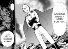 - ↑ Example from the first volume of One-Punch Man by ONE and Yusuke Murata.