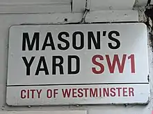 2. 1 2 "History of Mason's Yard, Mayfair". www.londonguidedwalks.co.uk. UK: London Guided Walks. 21 August 2014. Retrieved 6 November 2019.