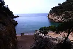 The Ardenya Massif is a quite compact mountainous terrain, granitic between the craggy portion near the sea and the forested plains to the west, the highest point of which is Puig Cadiretes (519 metres). The mountain ranges run broadly in a north-east / south-west direction and consist mostly of granite rock.[2]