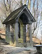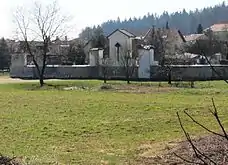 An additional mass grave in the city is likely located in Dobrunje, but has not been registered by the commission. The memorial site at Saint Ulrich’s Church is believed to contain the remains of people liquidated by the Partisans during or after the war,[16][17] including the "Šentpavel victims" (šentpavelske žrtve)—eight men abducted by Yugoslav military police (KNOJ) from the village of Šentpavel on 4 July 1945 and murdered.[16][18][19][20]