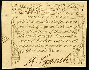Massachusetts resumed issuing paper money after the American Revolutionary War began in 1775. The state currency depreciated greatly and was replaced by the U.S. dollar in 1793.