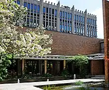 Massey College is a graduate residential college at the University of Toronto that was established, built and partially endowed in 1962 by the Massey Foundation and officially opened in 1963, though women were not admitted until 1974.[1] It was modeled around the traditional Cambridge and Oxford collegiate system and features a central court and porters lodge. Similar to St. John's College, Cambridge, and All Souls College, Oxford, senior and junior fellows of Massey College are nominated from the university community and occasionally the wider community, and are elected by the governing board of the college. The President of the University of Toronto, the Dean of graduate studies and three members of the Massey Foundation are ex officio members of the governing board, chaired by the elected member of the governing board. Members of the governing board are elected for five years; the Principal of the college is elected for seven years.