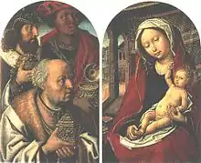 The Master of the Khanenko Adoration was a Flemish painter active at the end of the fifteenth century. His style is influenced by those of Hugo van der Goes, Hans Memling, and Robert Campin; additionally, echoes of the work of Joachim Patinir and Gerard David may be seen in some of his paintings. His name is derived from an Adoration of the Magi, now in the Museum of Western and Oriental Art in Kiev, that once belonged to the Khanenko collection. Also ascribed to him are a Madonna and Child in Stuttgart and an Adoration of the Magi in Saint-Omer, although both attributions have been disputed.