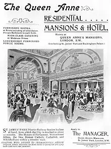 Matsukata lived in the United Kingdom in London at Queen Anne's Mansions from 1916 until November 1918 based in the Suzuki and Co. offices, he frequented the Japanese Club (Nihonjin Kai) where he met with artists, dealers and collectors in the Japanese community such as Sadajirō Yamanaka, Ishibashi Kazunori Frank Brangwyn; first at Leicester Square and later Cavendish Square; where he spent £2000 to help remodel the club building in 1918. He owned over 220 of Brangwyn's works and they often met to discuss Japanese and European art.[4]