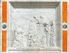 ![]() "Sermon on the Mount" by Jožef Pavlin (1875-1914). Pulpit in the parish and pilgrimage church Saint Veit in Brezje, Slovenia. | |