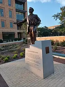 In 1998, activists on the campus of Texas A&M University suggested Gaines should have his statue displayed prominently. The project was abandoned in the wake of the Aggie Bonfire tragedy in 1999.[5] However, 19 years later, Texas A&M students and other supporters pushed yet again for the establishment of a statue of Matthew Gaines on the Texas A&M College Station campus. On June 19 of 2020, the donation goal of the “Matthew Gaines Initiative” was surpassed. A statue of Gaines was unveiled and dedicated on November 19, 2021.
