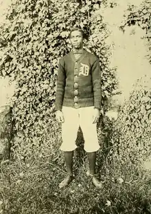 In his senior year Bullock was on the varsity football team and achieved national recognition.[6] He was part of the Dartmouth football team that defeated Harvard at the dedication event of the Dartmouth stadium in later 1903.[18] A picture of Bullock was printed in a November issue of the Boston Post at the age of 22.[19] A week later Bullock was refused accommodations during a game at Princeton University and also called out during the game; events that were covered in newspapers in various states across the nation.[20] He broke a collarbone in the first play of this third game of the year in this Princeton game and it was widely believed he had been targeted.[15] Dartmouth cut athletic ties with Princeton for several years.[15] This was all during Woodrow Wilson's presidency at Princeton there and his investment in segregationally practices in the school.[21] However Bullock was not named an All-American despite qualifying.[15][16] His senior year he was also a member Palaeopity Senior Society as a distinguished individual,[15] other by-invitation boards and committees,[6] and was the associate editor of The Aegis.[22]