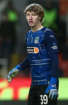 Matvei Yevgenyevich Safonov (Russian: Матвей Евгеньевич Сафонов; born 25 February 1999) is a Russian professional footballer who plays as a goalkeeper for Krasnodar and the Russia national team.