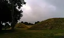 Around 2 km due east are the faint traces of a larger henge known as Mount Pleasant henge,[5] and archaeology has revealed the presence of another Neolithic enclosure known as Flagstones near there.[6] In addition, when archaeologists were digging on the site of the Tudor Arcade/Waitrose development in the 1980s (around 800 metres northeast of Maumbury Rings) they discovered large timber postholes. The evidence suggests that they were part of a large Neolithic enclosure with a diameter of around 300 to 400 metres.[7] Red markings, denoting sites of some of the timber posts, can be seen in the car park of Waitrose.[8]