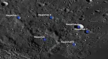 - ↑ The geologic history of the Moon. USGS Professional Paper 1348. By Don E. Wilhelms, John F. McCauley, and Newell J. Trask. U.S. Government Printing Office, Washington: 1987. Table 10.2.