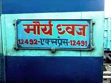 ![]() Barauni–Jammu Tawi Maurya Dhwaj Express nameplate | |