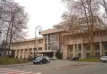 The tourist office, which has been awarded the Qualité Tourisme label, is located at the entrance to the Aix-les-Bains national thermal baths.[21] It is accessible from the departmental road 913, which separates the square from the spa building. There is also a beauty school in this listed building.[22]