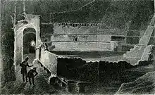 Occupation levels dating from the late La Tène culture to the early Middle Ages have been identified.[1] In the course of their excavations, archaeologists uncovered a major thermal complex in the immediate vicinity of the square's thermal springs during Ancient history.[10] The town's square is also home to the Arch of Campanus, probably built in the 1st century, but long integrated into a modest agricultural building.[11] It was excavated in 1822.[11]