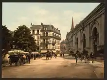The Municipality of Aix-les-Bains carried out numerous works to embellish the square during this contemporary period. To cater to the large influx of tourists and spa-goers, the town also expanded its accommodation capacity by creating a number of luxury hotels, including a palace called Astoria, on the edge of the square in 1904.[14]