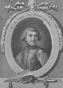 Count Maurice Benyovszky de Benyó et Urbanó (Hungarian: Benyovszky Máté Móric Mihály Ferenc Szerafin Ágost; Polish: Maurycy Beniowski; Slovak: Móric Beňovský; 20 September 1746 – 24 May 1786)[1] was a renowned military officer, adventurer, and writer from the Kingdom of Hungary, who described himself as both a Hungarian and a Pole.[2] He is considered a national hero in Hungary, Poland, and Slovakia.
