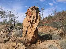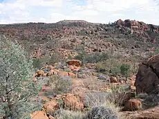 The plateau is a drainage basin for the Granite Plateau Creek, and its major tributary, Saucepan Creek. Both of these creeks flow only briefly after rain and as the region receives highly variable rainfall, water is scarce for most of the year and both creeks are ephemeral. In places the creeks have cut deep gorges and valleys into the plateau’s granite creating permanent and semi-permanent waterholes that support numerous species of frogs including the brown toadlet (Pseudophryne bibroniiand),[2] water spiders (Dolomedes spp.) and small populations of unidentified fish. The fish are possibly spangled perch, (Leiopotherapon unicolor) a widely distributed desert fish common in much of the Hamilton Creek Catchment, or Lake Eyre Hardyhead, (Craterocephalus eyresii) the most common and widely distributed fish in the Flinders Ranges.[2]