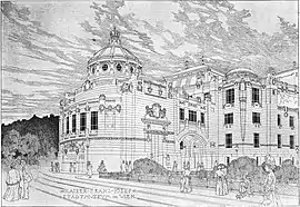 In his early projects like this (Kaiser Franz Joseph City Museum, ca. 1901), Hegele was inspired by Wagner's work.