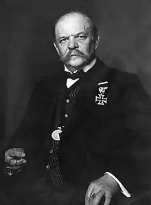 Following a June 1889 conference of anti-Semites in Bochum Liebermann von Sonnenberg set up his own political party, the Deutsch-Soziale Partei, which became the Deutschsoziale Reformpartei when it merged with Otto Böckel's Deutsche Reformpartei in 1894.[4] Active co-operation had actually started at the 1890 election when a joint list captured five seats in the Reichstag.[5] The two leaders however often found themselves in disagreement as Liebermann von Sonnenberg was basically a conservative whilst Böckel held a more radical world-view beyond his anti-Semitism, including a desire for land reform.[6]