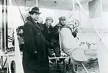 ![]() Max Lillie (center) with pilot R.G. Fowler. Frank Gotch, a famous wrestler, on the left | |