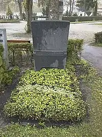 Oppenheim's grave is a basalt replica of the bottom half of the seated woman statue which he adored. It is evident he admired this statue, as Agatha Christie in her memoirs recalls Oppenheim looking up at this statue whilst on a tour of The Tell Halaf Museum in Berlin and exclaiming, "Ah my beautiful Venus."[13]