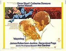 Mayerling is a 1968 romantic tragedy film starring Omar Sharif, Catherine Deneuve, James Mason, Ava Gardner, Geneviève Page, James Robertson Justice and Andréa Parisy.[2] It was written and directed by Terence Young. The film was made by Les Films Corona and Winchester and distributed by Metro-Goldwyn-Mayer.